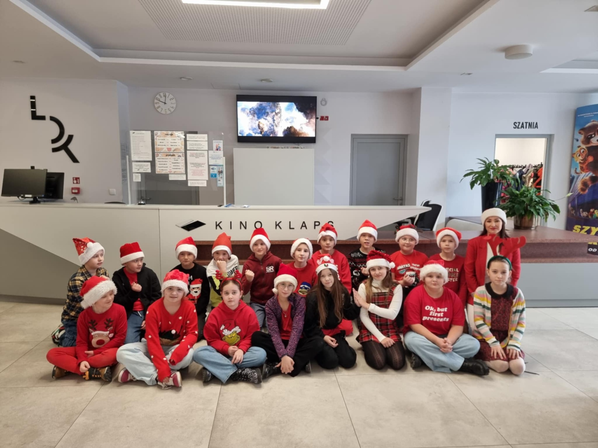 5 grudnia 2025 roku uczniowie klasy 3b wybrali się na mikołajkową wycieczkę do Miejskiej Biblioteki Publicznej w Limanowej, gdzie wzięli udział w mini konkursie wiedzy o świętach. Podzieleni na dwie drużyny z zapałem odpowiadały na pytania, rywalizując o miano najlepszej świątecznej ekipy. Po emocjonującej zabawie dzieci otrzymały prezenty od Świętego Mikołaja, po czym cała klasa udała się do kina "Klaps" w Limanowskim Domu Kultury na seans filmu "Zwierzaki na zakręcie". Pełen humoru film dostarczył wszystkim wielu uśmiechu, ale i wzruszeń. Był doskonałym zwieńczeniem udanego dnia.